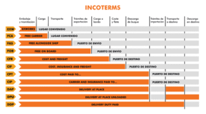 Una herramienta muy utilizada en el mundo del comercio internacional son los Incoterms. Los incoterms se usan para establecer definiciones estándares sobre cómo se van a repartir las responsabilidades, los gastos y la transmisión de riesgo entre quien compra y quien tiene la mercancía internacional en venta. Son de aceptación voluntaria y son muy útiles para unificar y esclarecer las responsabilidades y obligaciones de cada una de las partes.